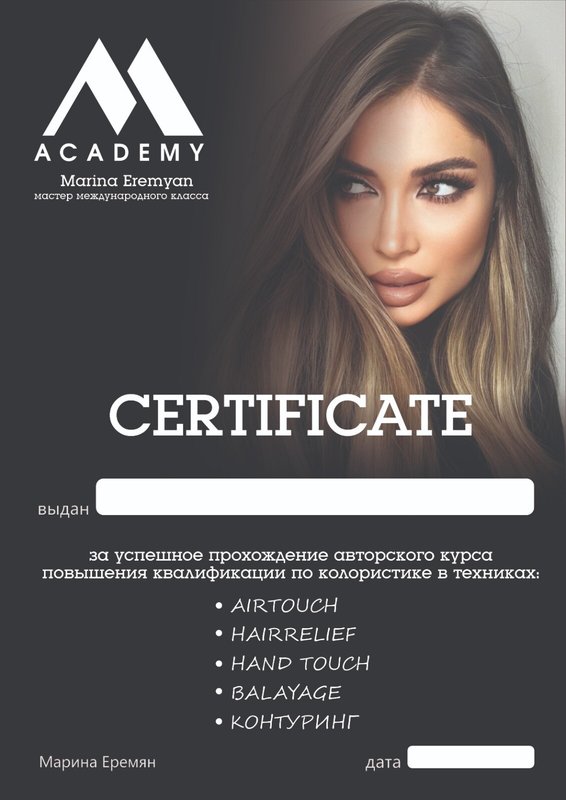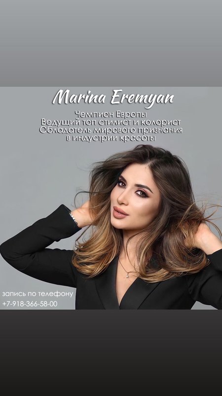 Вы все еще считаете, что салоны красоты - странный каприз и ненужная трата денег? Приходите в школу-студию красоты MARINA EREMYAN и убедитесь в обратном! Безупречный профессионализм наших парикмахеров не только гарантирует вам уровень ухода, который недостижим в домашних условиях, но, что важнее, даст шанс по-настоящему преобразиться, найдя новые стилистические решения. Здесь вы расслабитесь и испытаете королевский уровень заботы, который никого не оставит равнодушным!