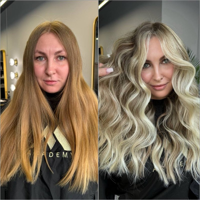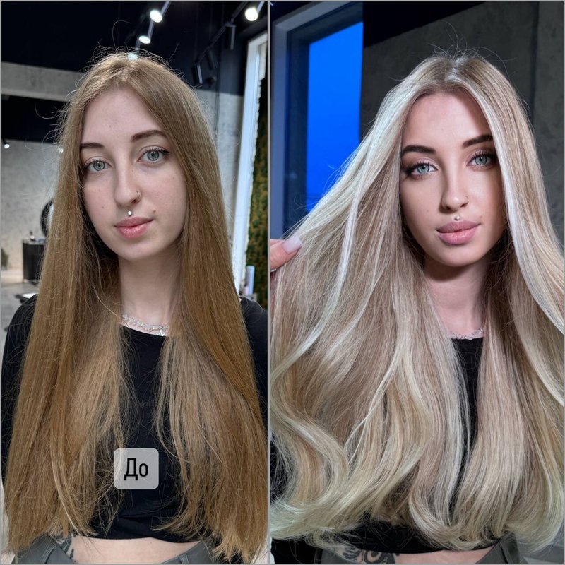 Большое спасибо Марине Еремян за преображение!Получаю огромное количество комплиментов о том,как мне идет и какое качественное и красивое окрашивание!Да я и сама себе больше нравиться стала🥰Волосы не смотря на 50% блонда остались живыми и здоровыми☺️Обязательно буду обращаться к Марине и дальше)